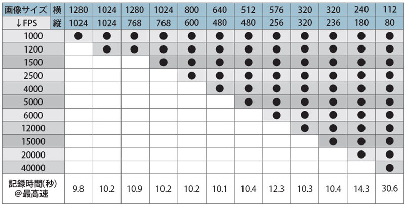 メガピクセルで1000コマ/秒・VGAで4,000コマ/秒