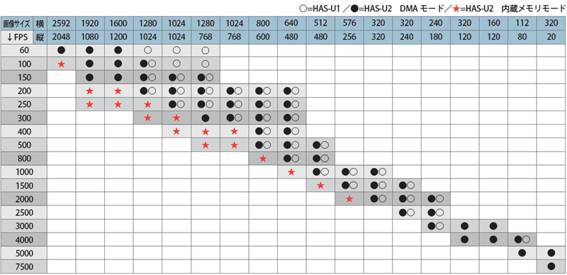 | カメラタイプ | モノクロ(HAS-U1M)/ カラー(HAS-U1C) |