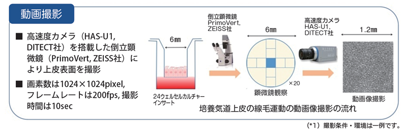 ※2025年11月1日の日本動物実験代替法学会第38回大会において、伊藤剛様(日本自動車研究所)の発表「線毛運動解析技術による気液界面培養条件下のヒトiPS細胞由来気道上皮における線毛運動周波数の温度依存的な変化の観察」の中で本ソフトウェアのデータ(ハイスピードカメラセット)が使用されております。